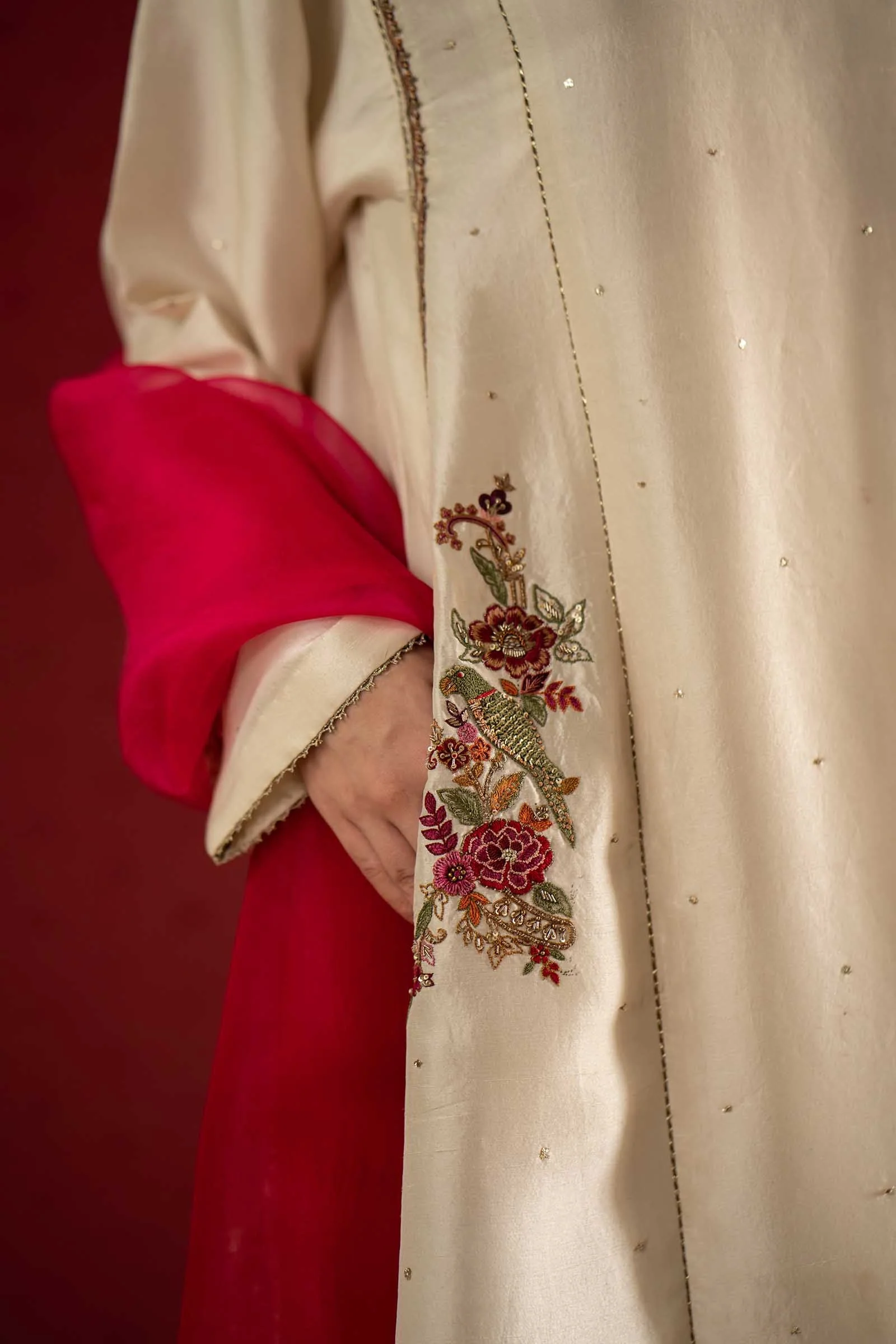 Pure raw silk, paneled kurta with resham and zardozi handwork